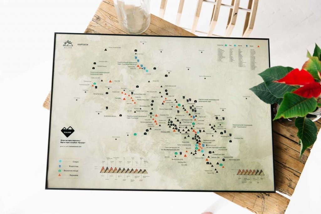 Мапа слугуватиме не тільки яскравим доповненням твого інтер’єру, а також надихатиме на нові здобутки та покорення нових власних вершин.