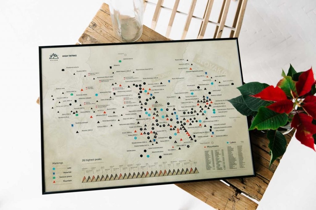 Мапа гірських вершин зі скретч покриттям “ВИСОКІ ТАТРИ” – це унікальний та оригінальний візуалізатор особистих досягнень та мотиватор до нових пригод.