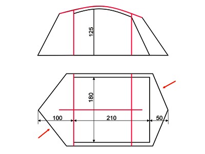 Стійка конструкція з трьох зовнішніх дуг дозволяє встановлювати тент без спального приміщення, а також забезпечує прості і швидкі складання та розбирання всього намету.